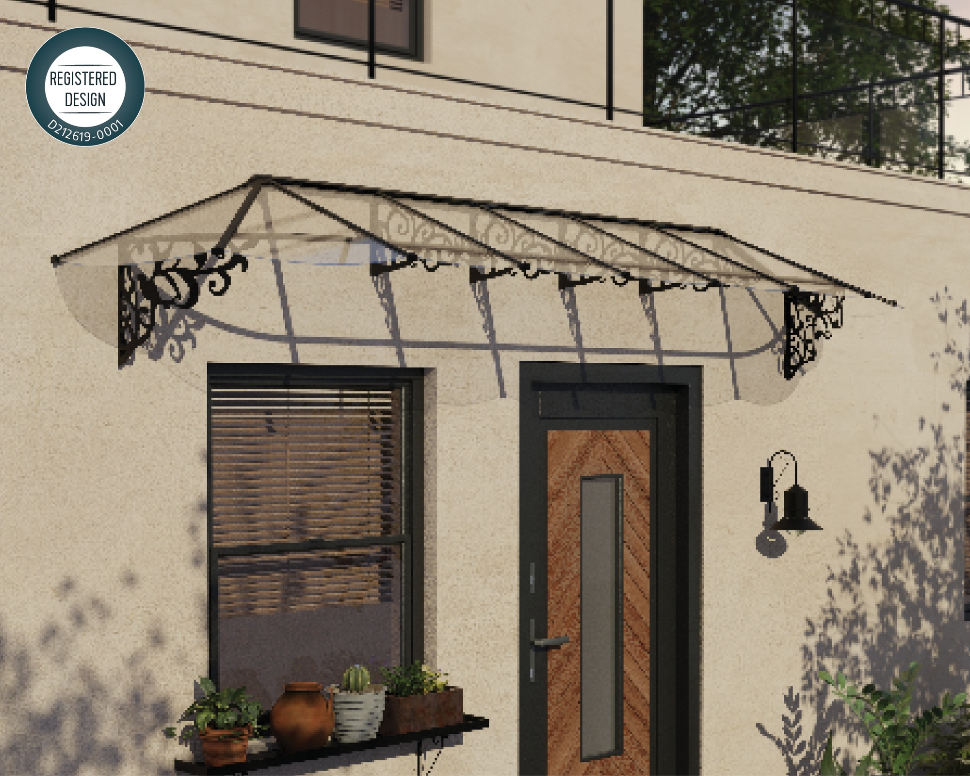 Skydda din entré och få den att se vacker ut med Lily entrétak. Med rostbeständiga aluminiumprofiler, pulverlackerade galvaniserade stålfästen med utsmyckade detaljer och genomskinliga paneler är entrétaket praktiskt taget underhållsfritt. Det är enkelt att montera och lätt att installera med den medföljande väggmonteringssatsen, oavsett om du använder det som en fönstermarkis, ytterdörrstak, verandatak eller garageportstak. Öka värdet på ditt hem eller din fastighet med denna miljövänliga förlängning. Entrétaket finns i olika storlekar för olika användningsområden, oavsett om du skyddar ditt fönster, din veranda, din ingång eller ditt garage, skapar Lily alltid en slående entré.