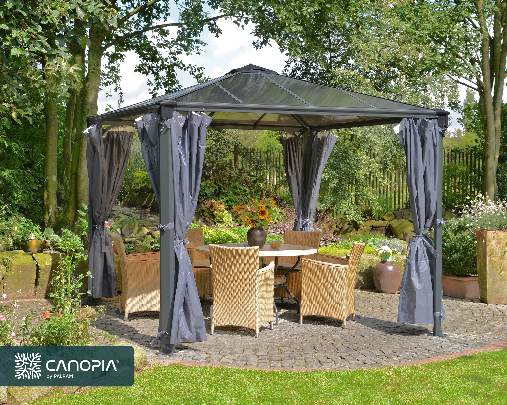 Med Palermo paviljong kan du skapa elegans och användbarhet i din trädgård året runt. Det är ett vackert tillägg till familjesammankomster eller en svalkande tillflykt från sommarens lata och disiga dagar. Palermo-paviljongen är robust och hållbar och ger skydd mot hårt väder och solens skadliga inverkan för många år av njutning. Detta vardagsrum i trädgården ger en känsla av avskildhet och erbjuder ett skuggigt och avkopplande område. Den är utmärkt för din grill eller ditt utomhusspa och är perfekt för att njuta av den friska luften och utsikten i din trädgård.
