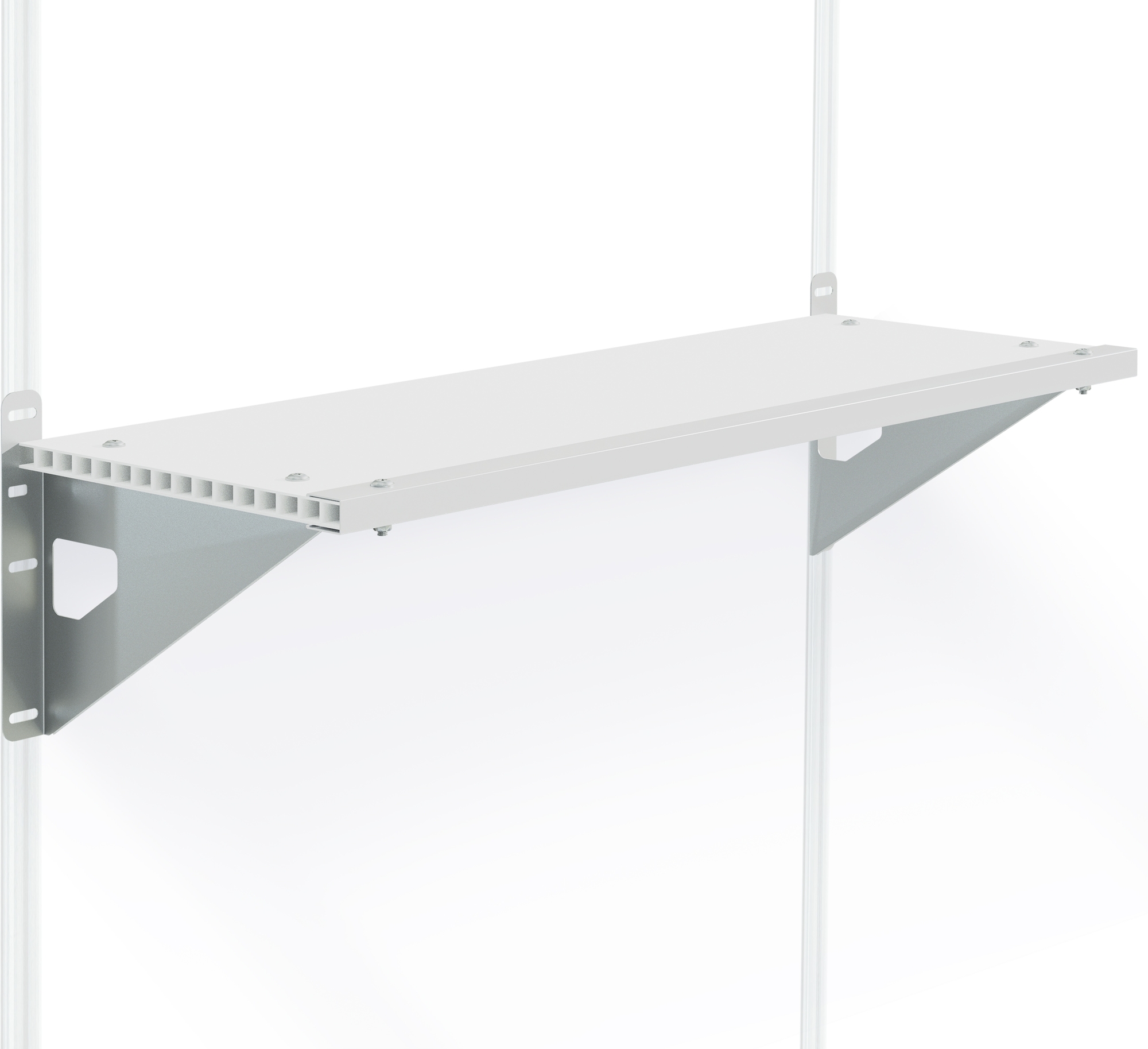 Optimera ditt förvaringsutrymme med SkyLight hyllsats. Detta är ett all-inclusive-sats som levereras komplett med en 16 mm hylla i högkvalitativ polykarbonat, två galvaniserade stålfästen och hårdvara. Med den här hyllan kan du frigöra det välbehövliga golvutrymmet och organisera din redskapsbod på ett effektivt sätt. Hyllan kan hålla upp till 30 kg; den är avsedd att monteras på SkyLight redskapsbod-seriens aluminiumram.