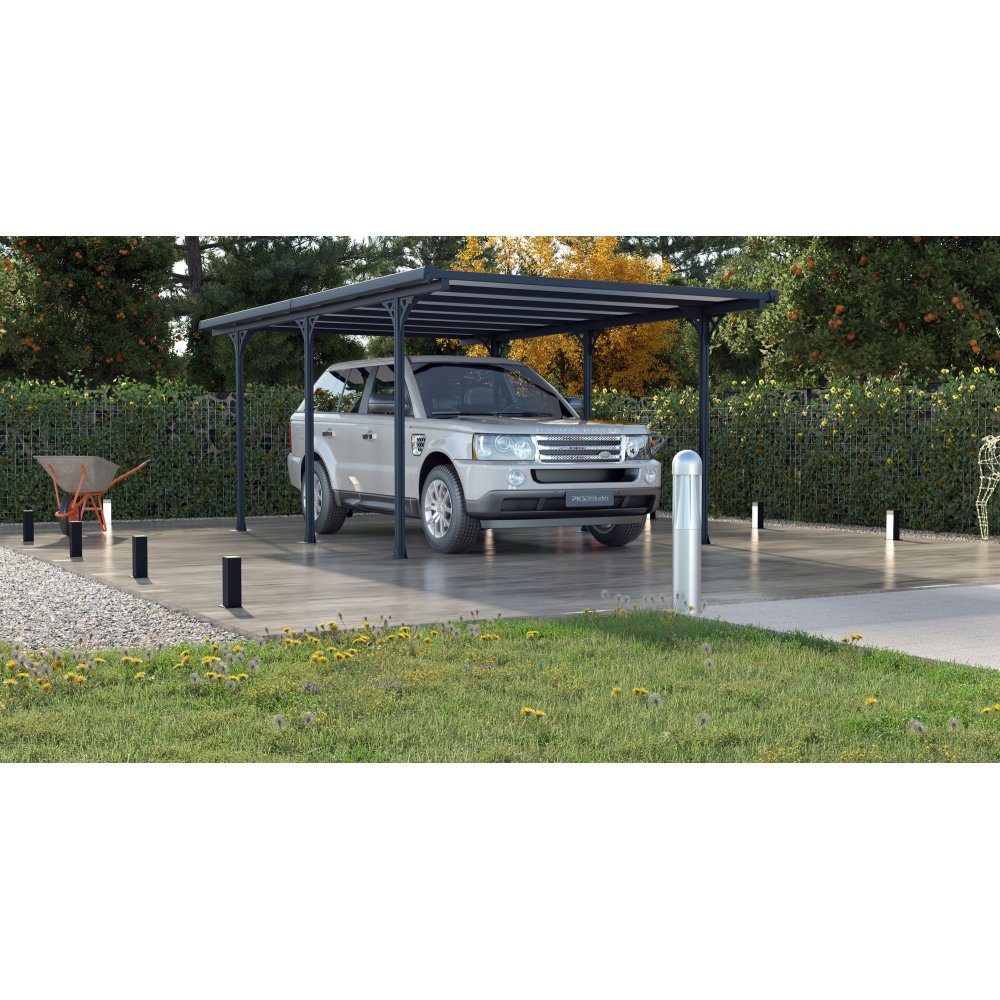 De 6 tjocka anti-UV polykarbonatpanelerna ger utmärkt skydd mot solens strålar och är designade för att stå emot tuffa väderförhållanden. För extra komfort är carporten även utrustad med inbyggda vattenrännor som effektivt leder bort regnvatten, samt stabila förankringsfötter för säker fastsättning.