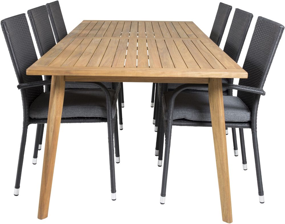 Charlottenberg Matgrupp (220x100) - Svart/Natur - 6 Stolar