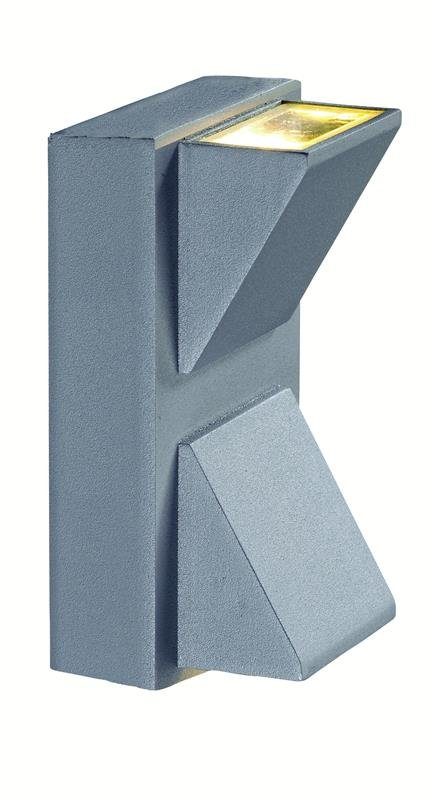Utomhuslampa Christerfors. En stilren och lättplacerad utomhuslampa med belysning både upp- och nedåt. Ljuskälla i LED är inkluderad. Tillverkad i grå lackad gjutjärn. Monteras direkt på väggen. Säkerhetsklass 1. Fast LED 1W, 194 lm. IP-klass IP44, godkänd för utomhusbruk.