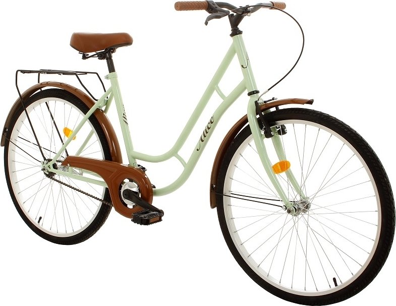 Klassisk damcykel som kommer med grundläggande bekvämligheter man kan förvänta sig, så som pakethållare, enväxlad, kjedjeskydd. Passar utmärkt för transport runt i tätorter.
