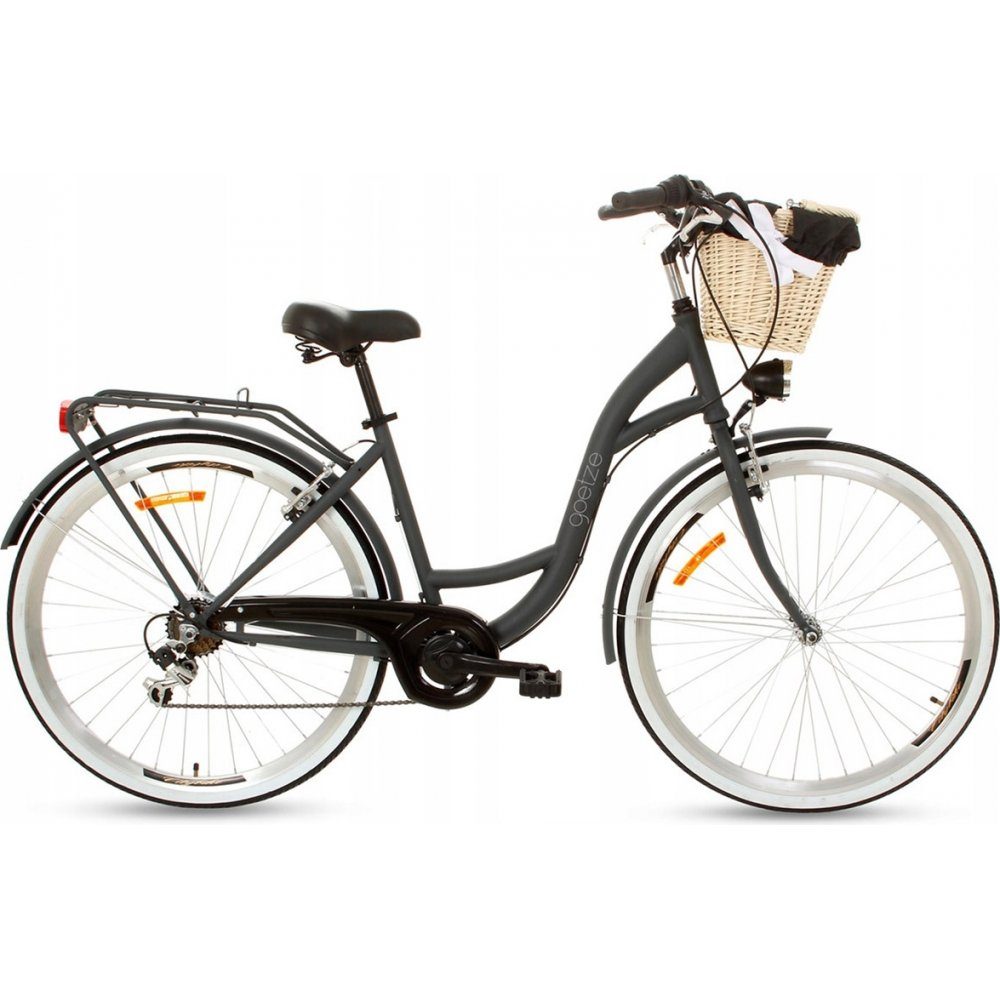 6 växlad med Shimano RevoShift som ger kontroll och en bekväm pedalhastighet oavsätt terräng. Cykeln är också utrustad med Shimano Turney-derailleur som guidar kjedjan mellan växlarna och skyddar mot kjedjehopp. Pakethållare, stänkskärmar och cykelkorg ingår.