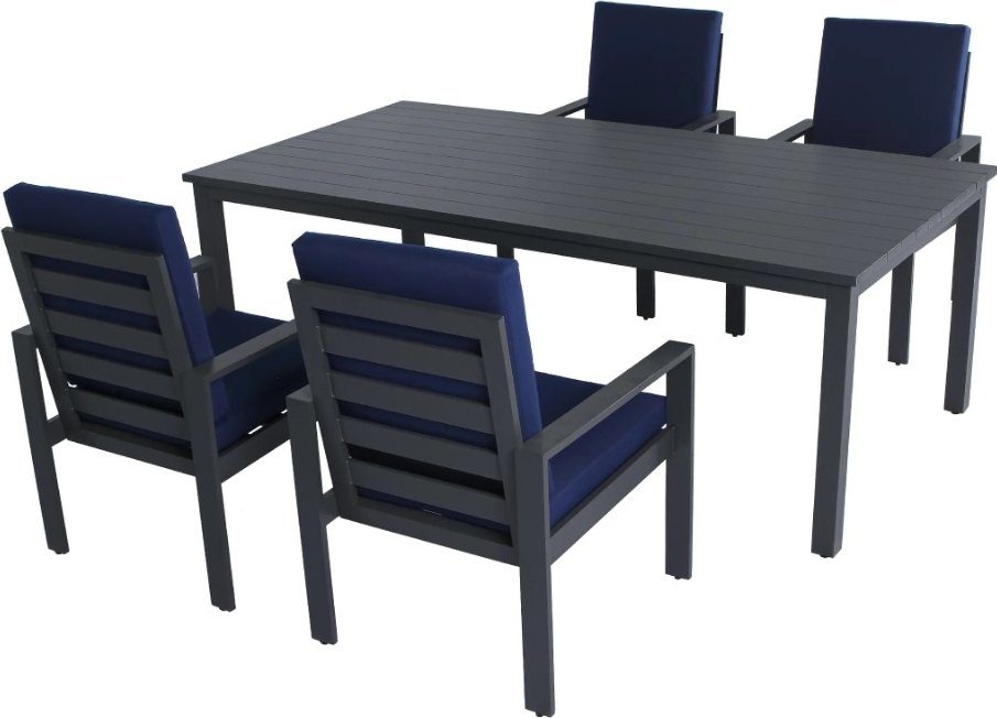 Utematgruppen från Djursvik-serien kombinerar modern design med hög kvalitet. Samtliga delar i matgruppen är tillverkade i antracitfärgad och pulverlackerad aluminium, dynor som medföljer är i en exklusiv blå färg som kombinerar lyx och bekvämlighet.