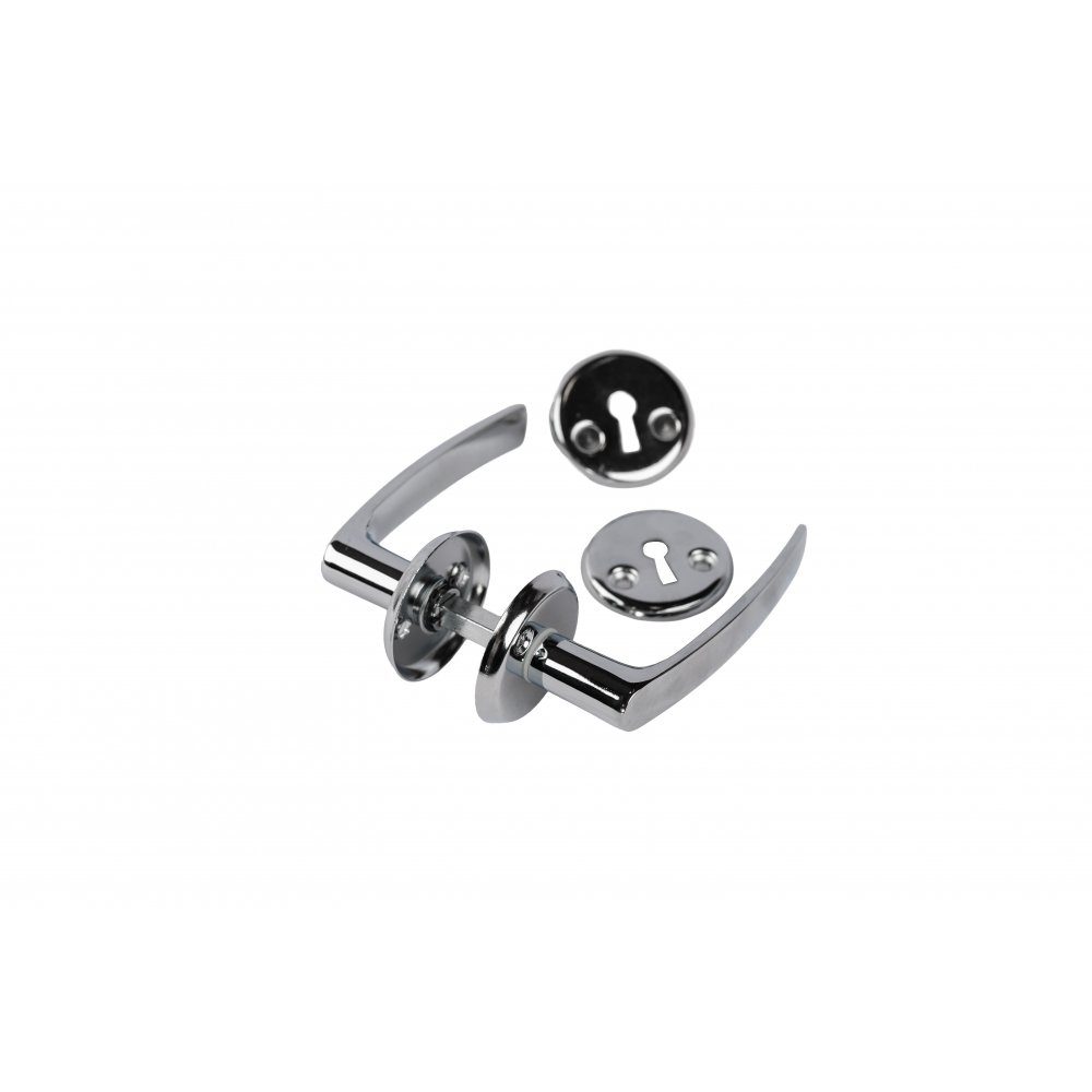 Ett fint innerdörrs handtag i hög blank krom där nyckelskylt ingår.