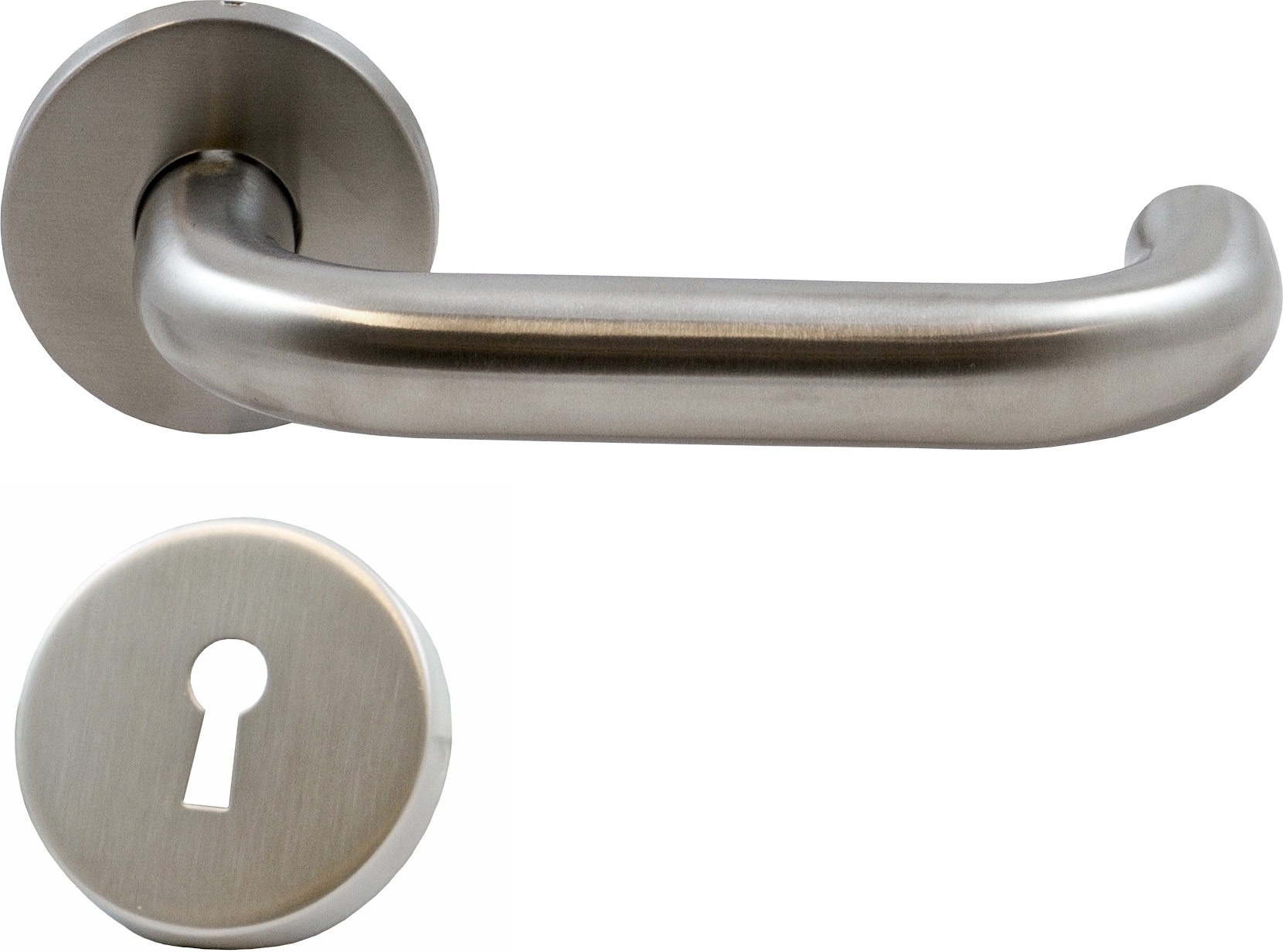 Ett fint innerdörrs handtag i rostfritt stål där nyckelskylt ingår.