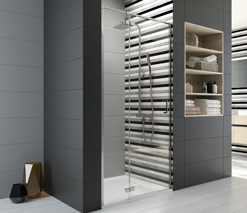 Duschdörr med utåtgående dörr. Glaspartier i duschhörnan är tillverkad av 6 mm säkerhetsglas, glasskyddsbehandlade som standard. Glasskyddet GLASS PROTECT är en ytbehandling som gör att vattnet lättare rinner av och lämnar mycket lite kalk och smutsrester efter sig. Tät dörrstängning garanteras av magnetiska dörrlister. Höjd 200 cm. Modellen finns i flera storlekar.