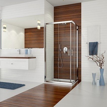 De praktiska och eleganta skjutdörrarna ger en smidig och platsbevarande lösning för att enkelt ta sig in och ut från duschen. De praktiska förkromade dörrhantagen erbjuder en komfortabel dörrstängning. Med justerbara väggprofiler kan du anpassa duschhörnan för att passa mot väggar med mindre kurvatur, vilket ger en perfekt passform i ditt badrum. De magnetiska dörrlisterna ger en tät dörrstängning.