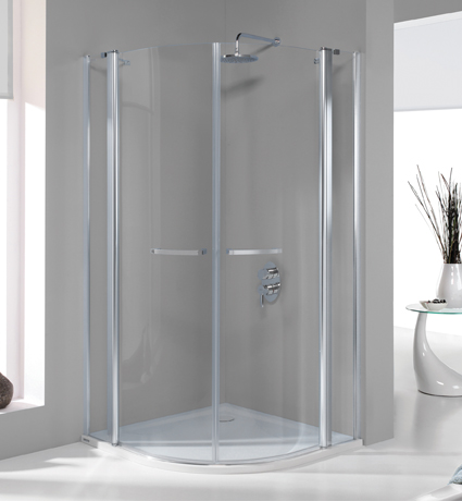 Duschhörna med in- och utåtgående dörrar. Glaspartier i duschhörnan är tillverkad av 6 mm säkerhetsglas, glasskyddsbehandlade som standard. Glasskyddet GLASS PROTECT är en ytbehandling som gör att vattnet lättare rinner av och lämnar mycket lite kalk och smutsrester efter sig. Tät dörrstängning garanteras av magnetiska dörrlister. Höjd 195 cm. Modellen finns i flera storlekar.