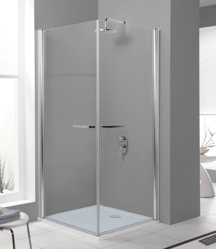 Duschhörna med in- och utåtgående dörrar. Glaspartier i duschhörnan är tillverkad av 6 mm säkerhetsglas, glasskyddsbehandlade som standard. Glasskyddet GLASS PROTECT är en ytbehandling som gör att vattnet lättare rinner av och lämnar mycket lite kalk och smutsrester efter sig. Tät dörrstängning garanteras av magnetiska dörrlister. Höjd 195 cm. Modellen finns i flera storlekar.