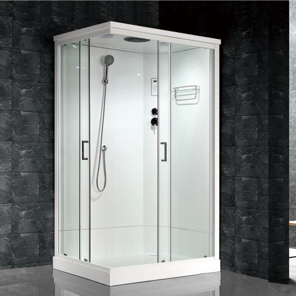 Utrusta dig med en handdusch och en takdusch med vattenfallsfunktion, som ger en omslutande och avkopplande duschupplevelse, perfekt för att slappna av efter en lång dag. Duschkabinen kommer med en praktisk glashylla för förvaring av tvål och andra duschprodukter, vilket gör det enkelt att hålla ordning. Den integrerade datorpanelen låter dig styra fläktens effektivitet, medan FM-radion med topljus gör din duschupplevelse ännu mer underhållande och avkopplande.