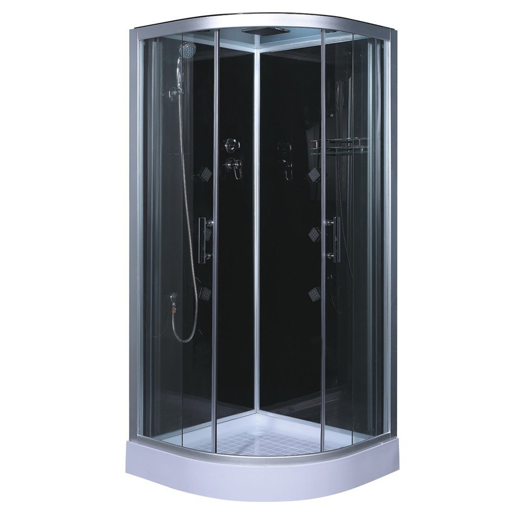 Fronten är gjord av 5 mm klarglas som skapar en öppen och luftig känsla samtidigt som den ger ett stilrent intryck. Duschkabinen har en kran av mässing för lång hållbarhet och en touch av elegans samt en handdusch som ger dig flexibilitet och bekvämlighet vid duschning. De 6 massage jet's som finns i duschkabinen erbjuder en avkopplande och stimulerande massage för en lyxig känsla. Takduschen ger en mjuk och naturlig duschupplevelse som simulerar att stå under ett vattenfall. Den praktiska glashyllan gör att du bekvämt kan förvara dina duschtillbehör och produkter.