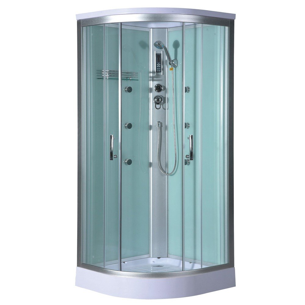 En integrerad datorpanel låter dig enkelt styra kabinens funktioner. Här finns bland annat fläktkontroll för bättre luftcirkulation, FM-radio för att njuta av musik under duschen, samt ett effektfullt topljus som skapar en behaglig atmosfär. En praktisk glashylla ger plats för duschtillbehör och håller ordning inne i kabinen.