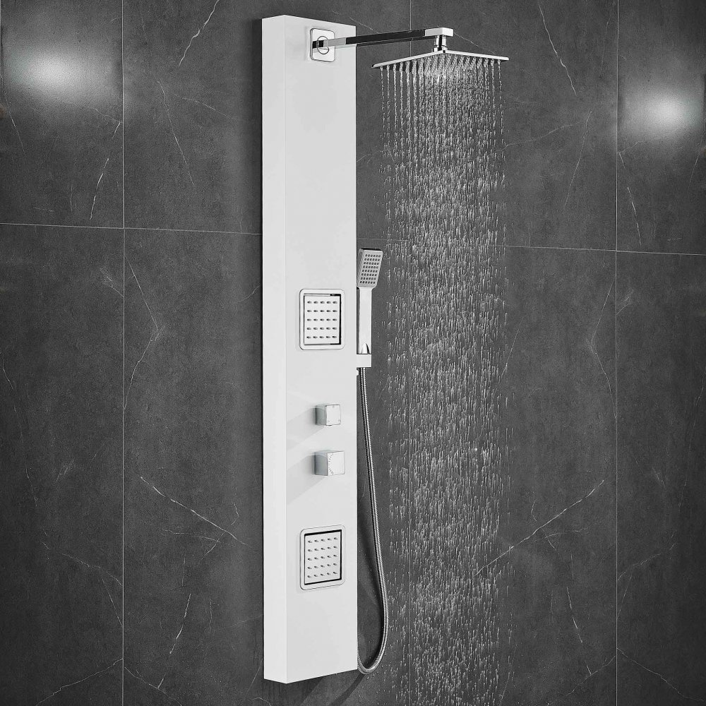 Duschpanel i vitt rostfritt stål med tre strållägen