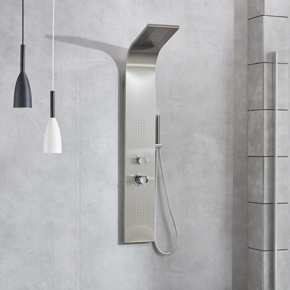 Denna eleganta duschpanel i rostrfritt stål kombinerar modern design med funktionalitet för en lyxigare duschupplevelse. Generöst utrustad med en takdusch med 50 munstycken, två ryggduschset med 50 munstycken vardera samt en 1.5 meter slang, erbjuder denna den optimala dusch-upplevelsen.