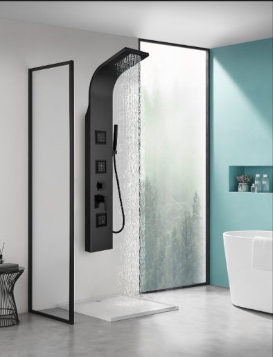 Duschpanel i svart borstat rostfritt stål med justerbara strållägen