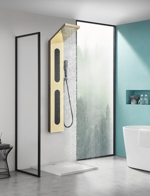 Duschpanel Zeri – spegelguld och svart rostfritt stål