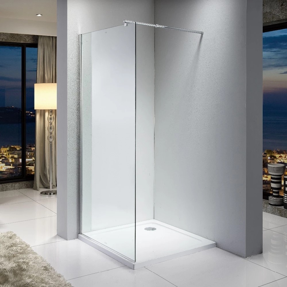 Skapa en stilren och öppen atmosfär i ditt badrum med denna duschvägg i klarglas. Med en robust konstruktion och en minimalistisk design är detta det perfekta valet för den som önskar en enkel och elegant duschlösning. Tillverkad av 8 mm klarglas erbjuder denna duschvägg både stabilitet och säkerhet. Ramen i kromad aluminium ger en modern finish och kompletterar det rostfria stålet i duscharmen, vilket skapar en harmonisk och strömlinjeformad look.