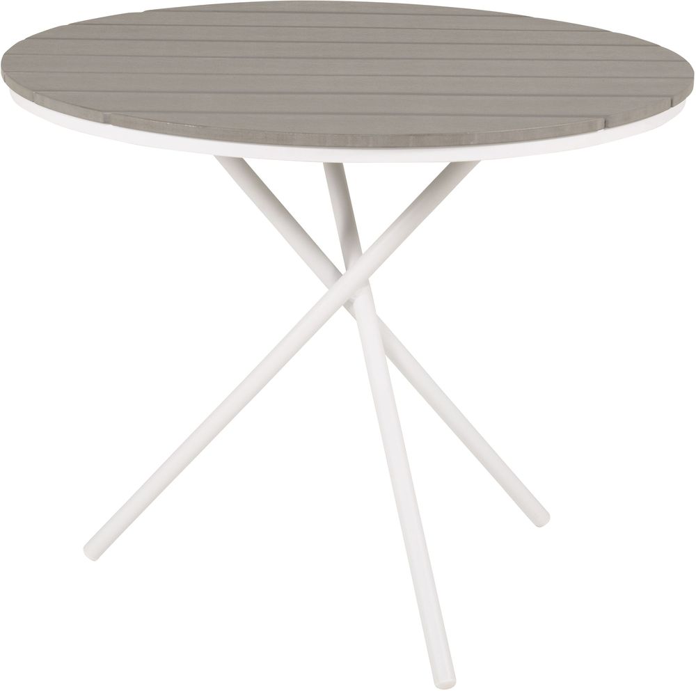Cafébord med underrede i metall och bordsskiva av aintwood.