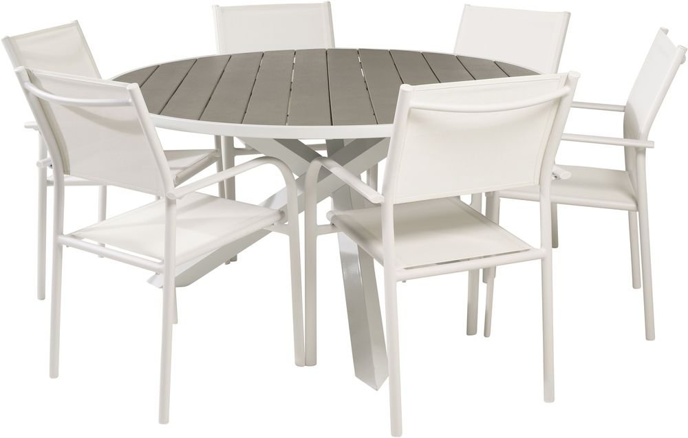 Ebbarp Matgrupp (ø140) - Vit/Grå - 6 Stolar