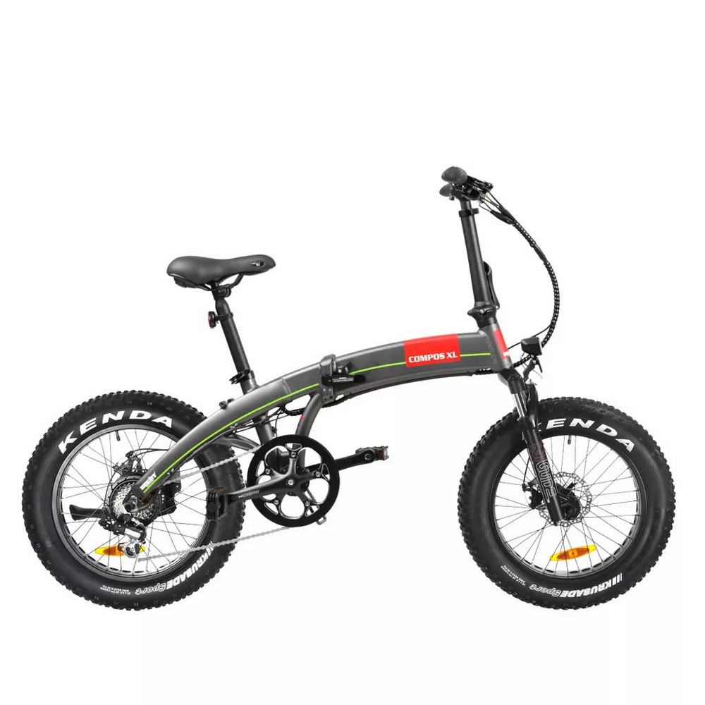 Elcykel Compos är utrustad med Shimano växlar och bromsarna är skivbromsar av märket Tektro Aries. Framgafflarna är fjädrade.
