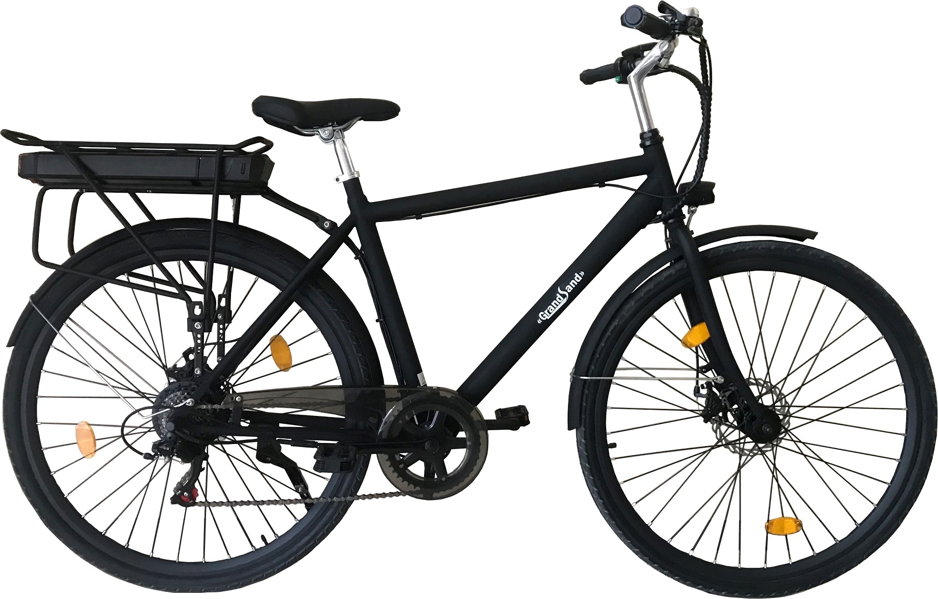 Elcykel med en elmotor på 250W, drivs av ett Li-ion batteri på 36 volt och 10 Ah.