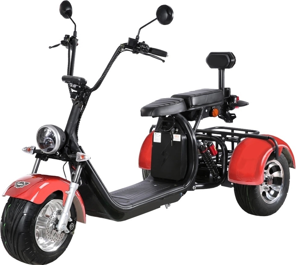 Elektrisk TrehjulsScooter som drivs av en borstlös elmotor på 2000W. Motorn drivs av ett högkvalitativt 60 V / 20 Ah litiumbatteri. En full laddning har en räckvidd på upp till 50 km, beroende på omständigheterna. Batteriet förvaras i ett skåp under sätet, i golvet under förarens fötter finns det ett annat skåp, där du valfritt kan placera ett andra batteri.