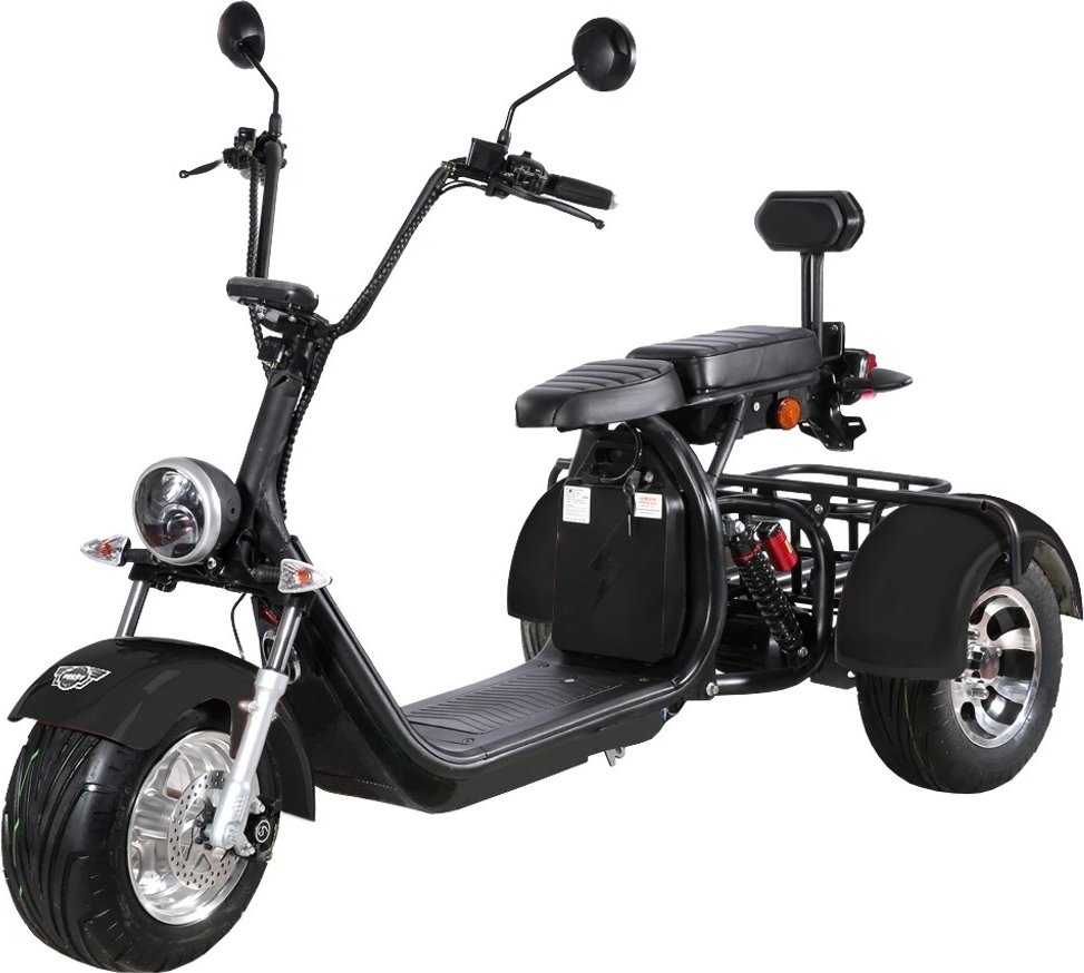 Elektrisk TrehjulsScooter som drivs av en borstlös elmotor på 2000W. Motorn drivs av ett högkvalitativt 60 V / 20 Ah litiumbatteri. En full laddning har en räckvidd på upp till 50 km, beroende på omständigheterna. Batteriet förvaras i ett skåp under sätet, i golvet under förarens fötter finns det ett annat skåp, där du valfritt kan placera ett andra batteri.