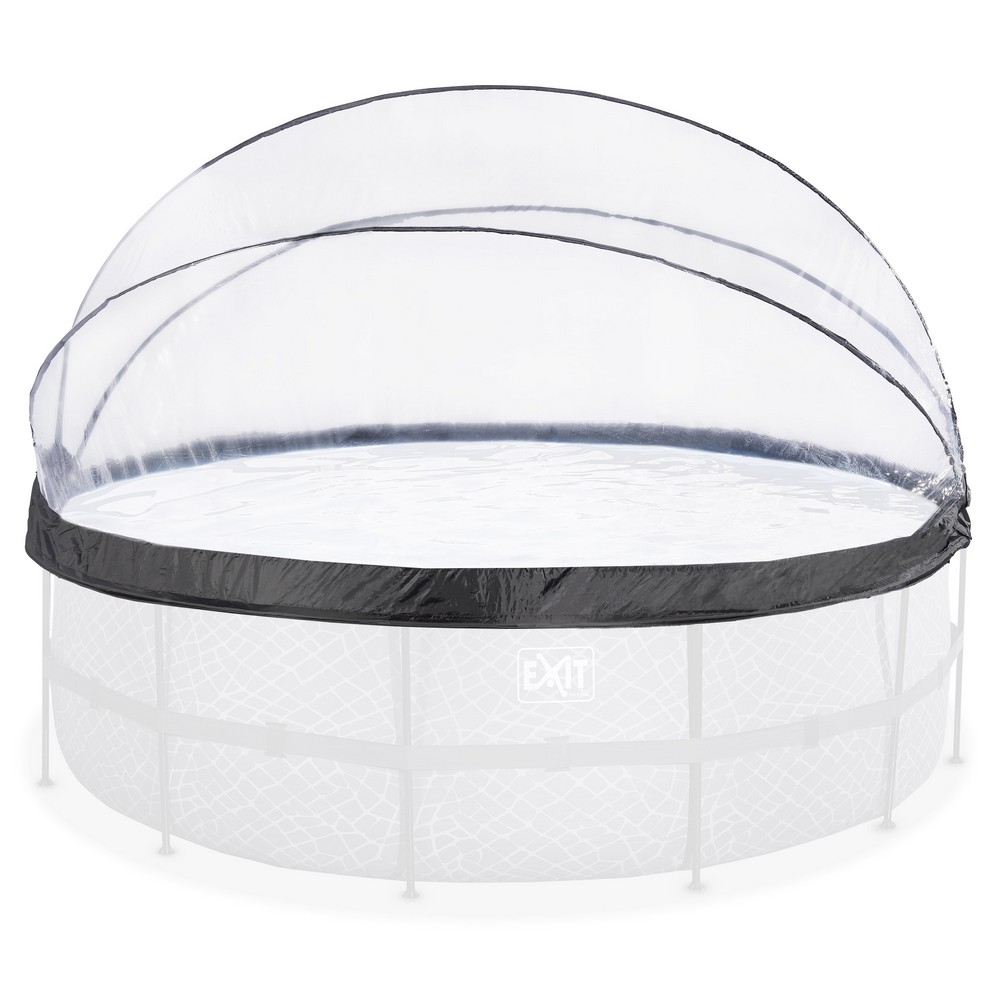 Exit dome är ett praktiskt kupoltak designat för runda ovanmarkspooler med en diameter på 450 cm, skyddar detta tak effektivt mot smuts och skräp samtidigt som det hjälper att bibehålla värmen i din pool, vilket förlänger badssäsongen.