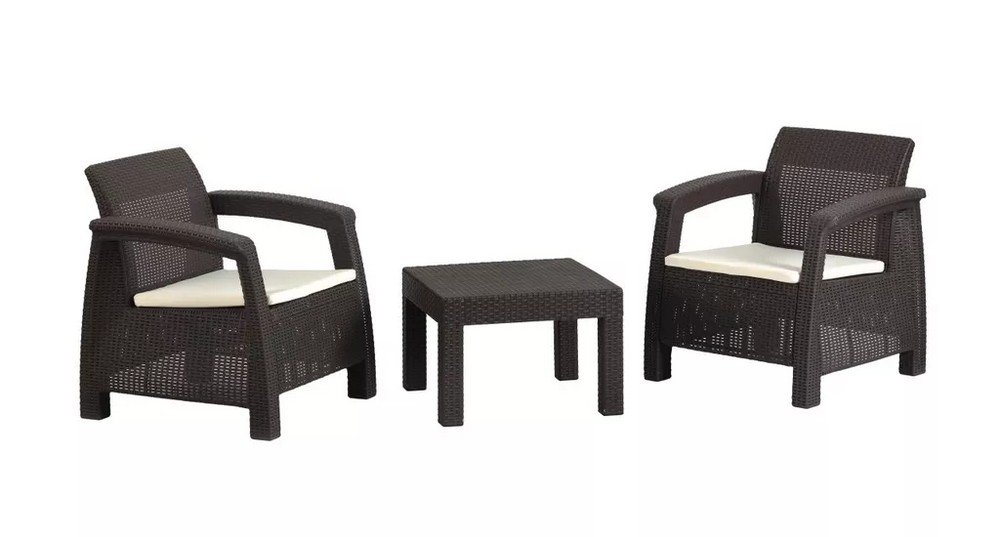 - Tillvekrat i gjuten plast, efterlikning av platt rotting, som kännetecknas av hög hållbarhet och hög bärkraft (upp till 160 kg).