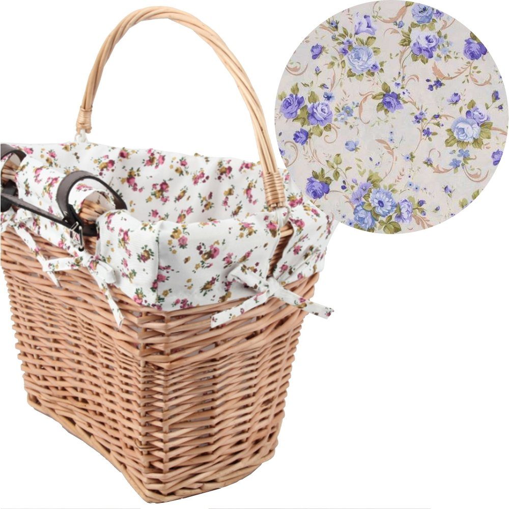 Flätad cykelkorg med blå blommor