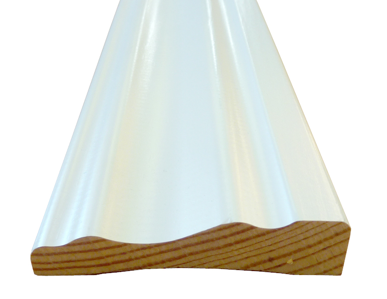 Vitmålade foder allmoge i furu. Tjocklek: 15 mm, bredd: 69/95 mm, längd: 820-2220mm.