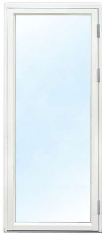 Helglasad aluminiumbeklädd fönsterdörr i 3-glas med mycket god isoleringsförmåga (2 st lågemissionsglas (LE) från Sunnerbo fönster. Säkerhetsglas både utvändigt och invändigt.