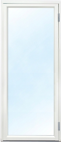 Helglasad aluminiumbeklädd fönsterdörr i 3-glas med mycket god isoleringsförmåga (2 st lågemissionsglas (LE)). Säkerhetsglas både utvändigt och invändigt.