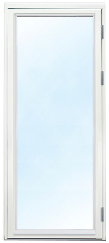 Helglasad fönsterdörr i 3-glas med mycket god isoleringsförmåga (2 st lågemissionsglas (LE) från Star Center fönster. Säkerhetsglas både utvändigt och invändigt. Fönsterbleckens färg är vit.