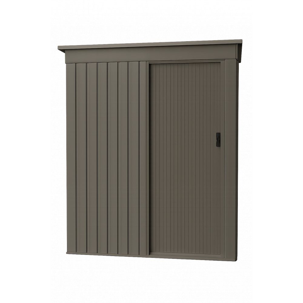 Detta kompakta och hållbara förråd är perfekt för att lagra trädgårdsutrustning, cyklar eller andra hushållsartiklar på ett säkert och organiserat sätt. Dess moderna design i grått gör att det enkelt smälter in i din utomhusmiljö.