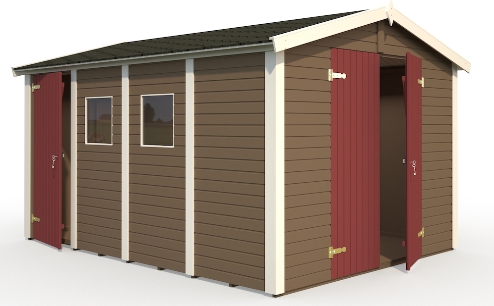 I denna praktiska bod Dan får du plats med mycket, exempelvis cyklar, trädgårdsmaskiner eller trädgårdsmöbler vintertid. Dess design är klassisk och till för att lätt kunna passa in i olika miljöer, och eftersom boden levereras obehandlad har du själv möjlighet att välja färger som passar in i din omgivning. Förrådet är uppdelat i två rum med separata ingångar och varsitt fönster. Den breda dubbeldörren gör det enkelt för passage med större föremål och är försedd med påskruvade T-gångjärn, klinka, hasp & märla. Väggar och tak är av spontade brädor och fasaden av färdiga väggelement och vindskyddande plast.