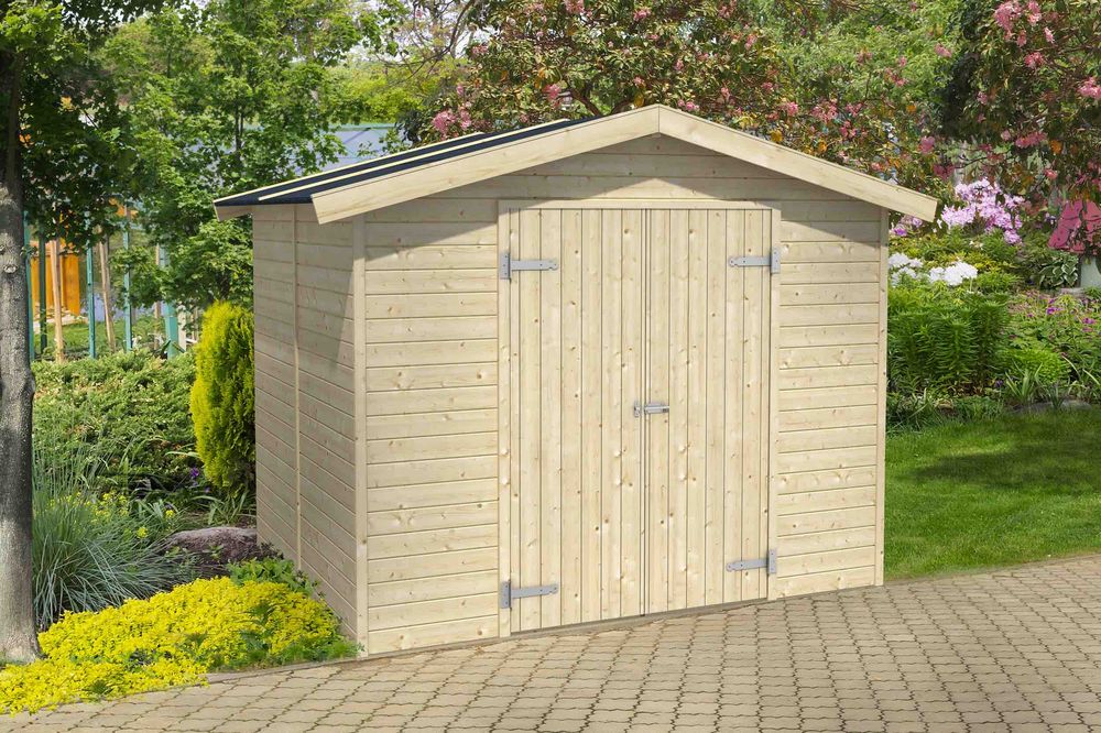 Detta förråd levereras komplett som en byggsats och monteras enkelt ihop efter medföljande ritning. Boden har en knuttimrad design och uppbyggnad vilket gör den både lättmonterad och stabil. Allt material levereras obehandlat, rekommenderat är att tidigt behandla med grundolja, utegrundfärg eller täckfärg. Inkluderat är allt som behövs för montering, d.v.s. spikar, skruvar etc.