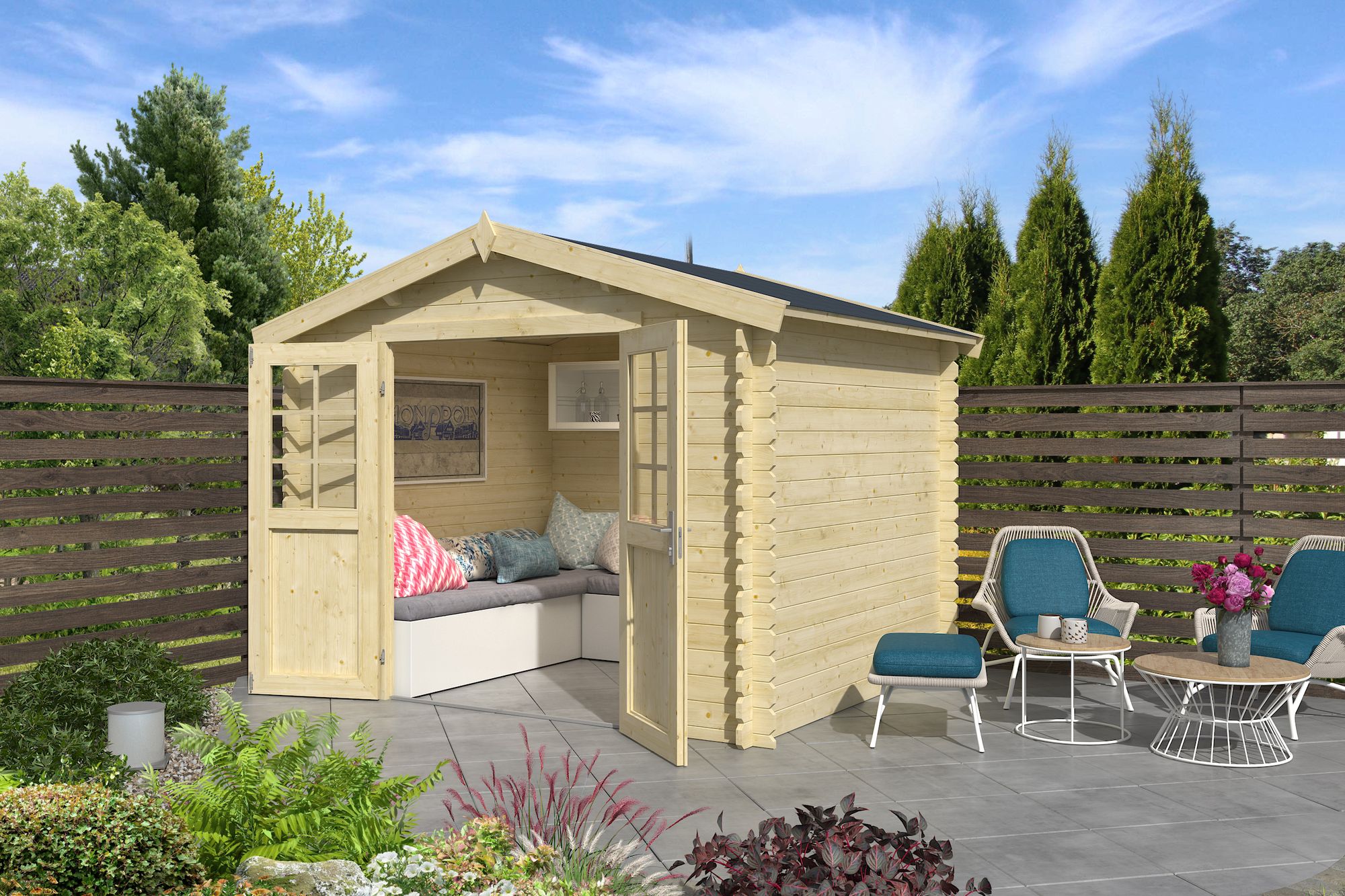 Allt material i denna byggsats levereras obehandlat. Därför rekommenderas det att tidigt behandla material med grundolja, utegrundfärg eller täckfärg.