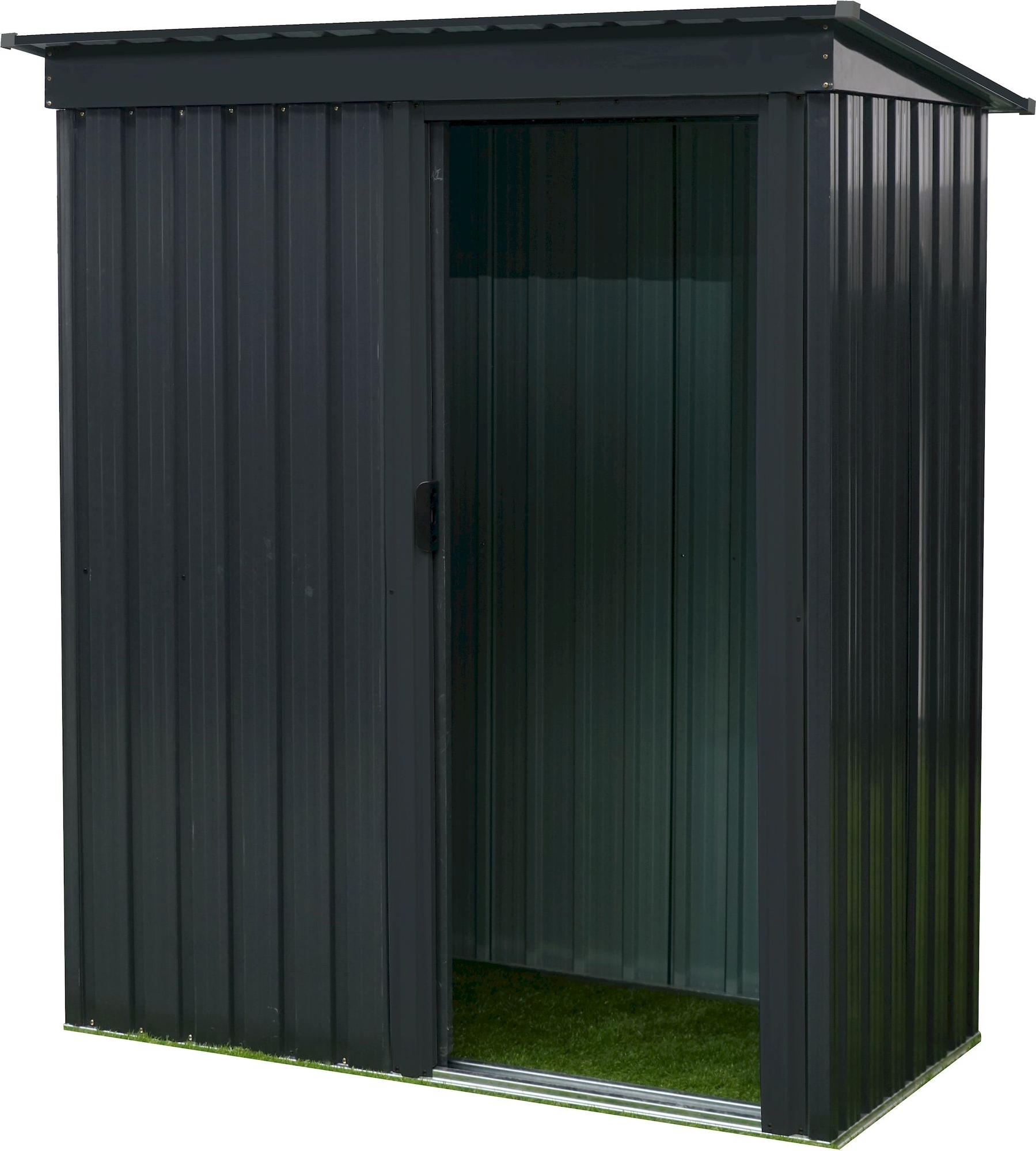 Tillverkat i svartfärgat galvat stål, vilket gör förrådet väldigt robust och tåligt mot de flesta väderförhållanden i flera år.