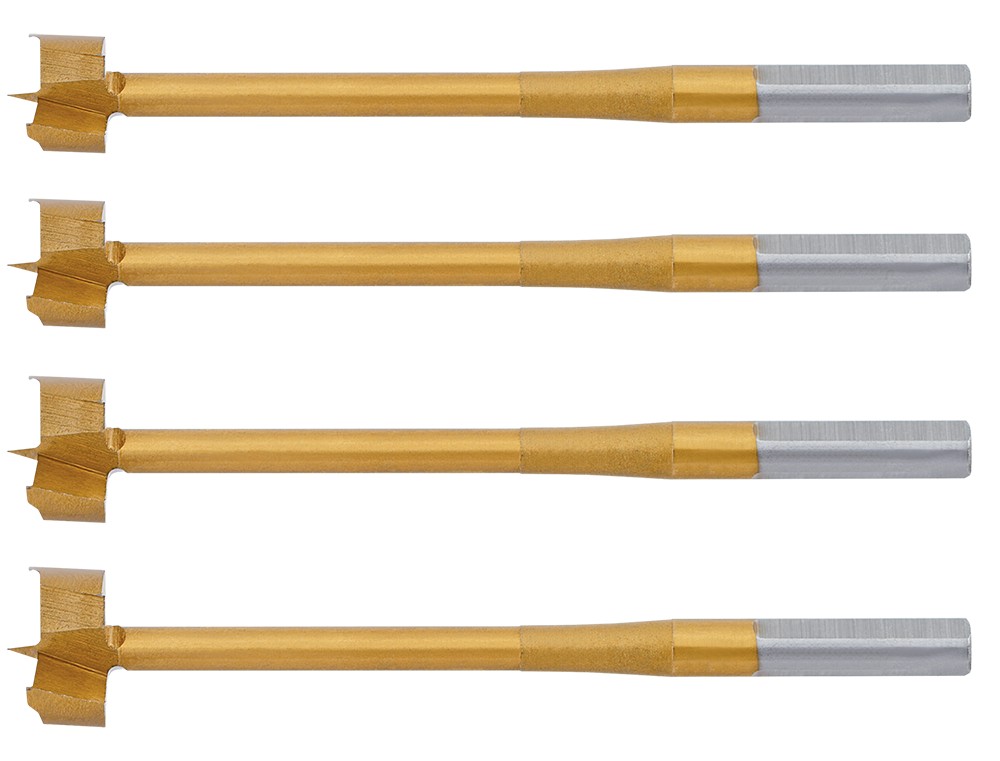 Forstner borrbitssats, tennbelagda, 4 delar