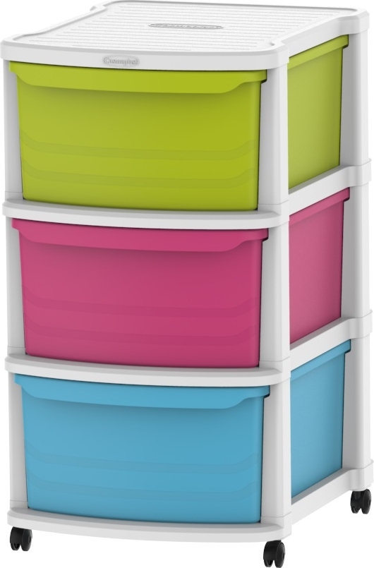 Förvaringshurts med hjul, 3 lådor - Blandade färger