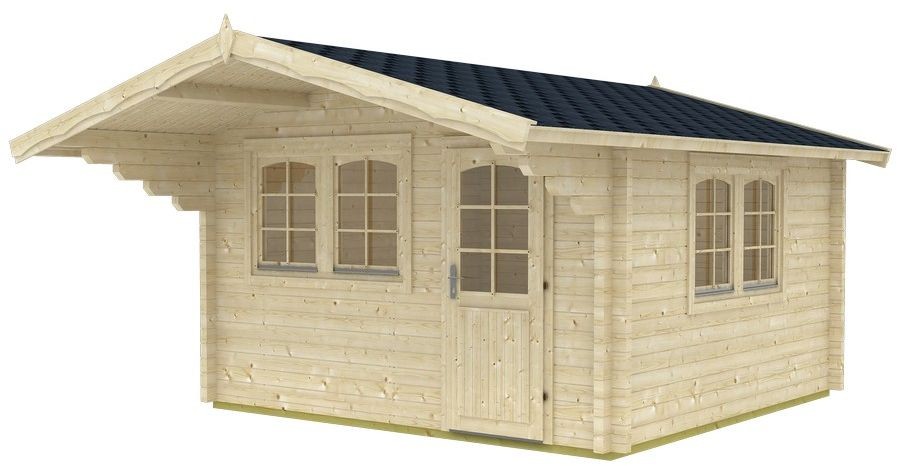 - Golv och tak: Består av 18 mm råspont. Taket kläs med papp, shingel eller plåt. Detta ingår ej.