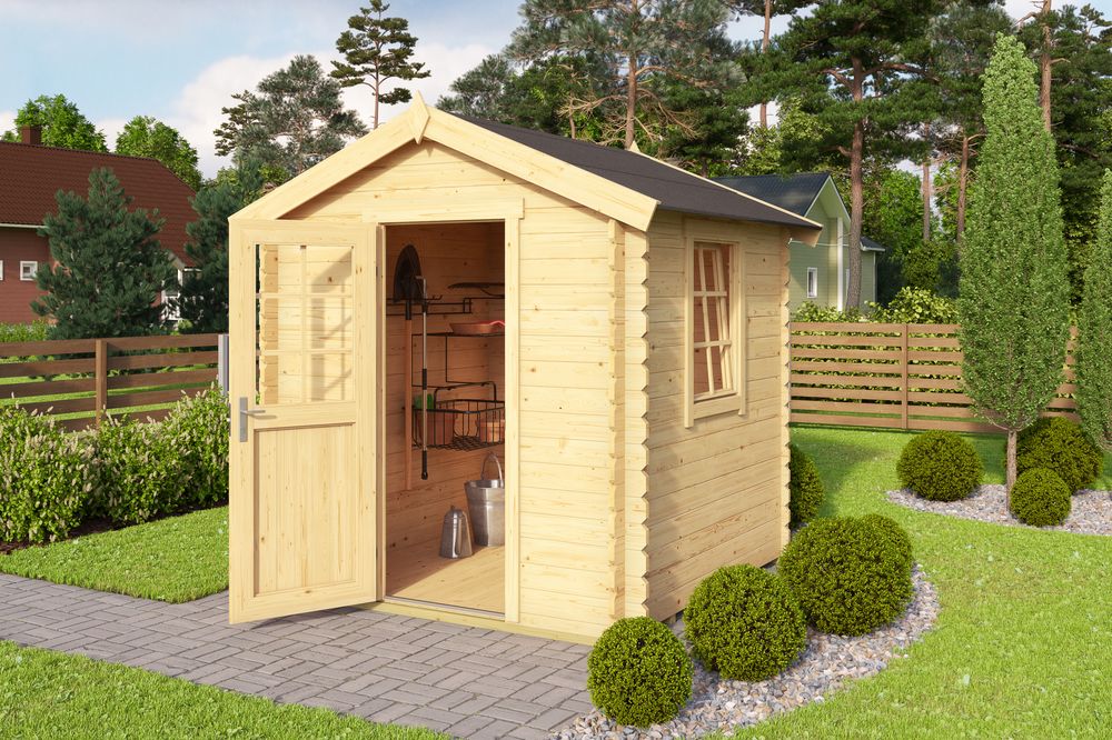 Denna friggebod levereras komplett som en byggsats och monteras enkelt ihop efter medföljande ritning. Stugan har en knuttimrad design och uppbyggnad vilket gör den både lättmonterad och stabil. Allt material levereras obehandlat, rekommenderat är att tidigt behandla med grundolja, utegrundfärg eller täckfärg. Inkluderat är allt som behövs för montering, d.v.s. spikar, skruvar etc.