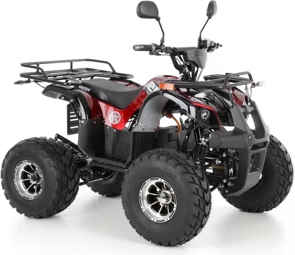 Hecht 56155 är en elektrisk fyrhjuling med en stark 1200 W elektrisk motor, som drivs med 72 V / 20 Ah. Uppladdningstid på 8 - 10 h och en maximal topphastighet 45 km / h som självklart påverkas av förarvikt, last, däckskick och en del andra aspekter. Elmotorn är kopplad direkt till drivaxeln, utan kjedja eller kardanaxel för minimalt underhåll. Hastighet, laddstatus och annan information går att läsa på en stor, modern LED-Display. Fyrhjulingen är automatisk med en växel för fram och en för back.