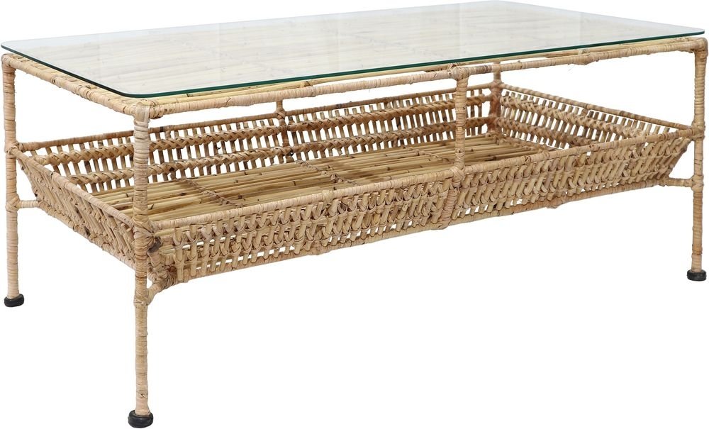 Galice soffbord av naturfärgad rotting med stabil stomme av metall, klädd med rotting. Toppskiva av glas, praktisk underhylla. I serien Galice finns även fåtölj och soffa.