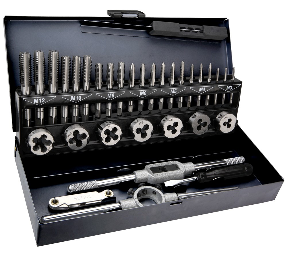 Kitet är den perfekta lösningen för "gör det själv"-entusiaster. Praktiskt fodral för alla delar. Gängtappar och gängsnitt är tillverkade i Volfram-stål enligt DIN 352 och DIN 233, för garanterad tillförlitlighet.