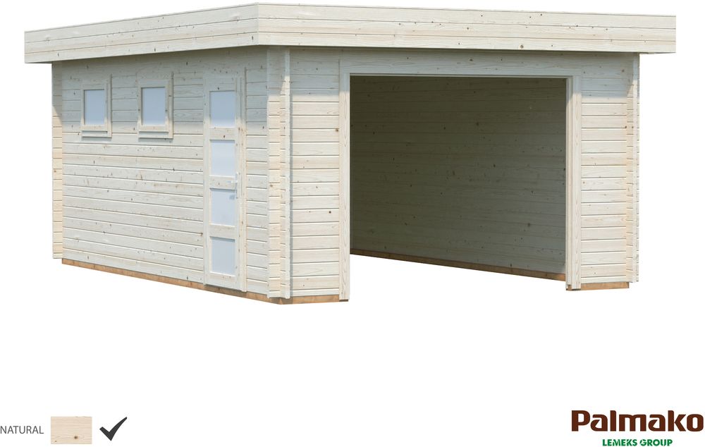 Denna byggsats kommer utan portar. Detta garage finns även med slagport eller takskjutport.