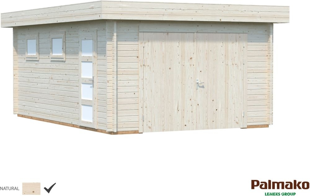 Denna byggsats kommer med slagport. Detta garage finns även med takskjutport eller utan portar.